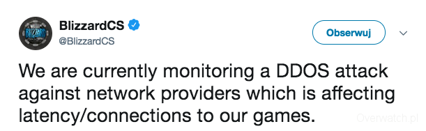 Zaczęło się godzinę temu od problemów z zalogowaniem. Blizzard poinformował wówczas, że zmagają się z dużym problemem. Do końca niewiadomo było, jaki to problem, aż do oficjalnego komunikatu na Twitterze.