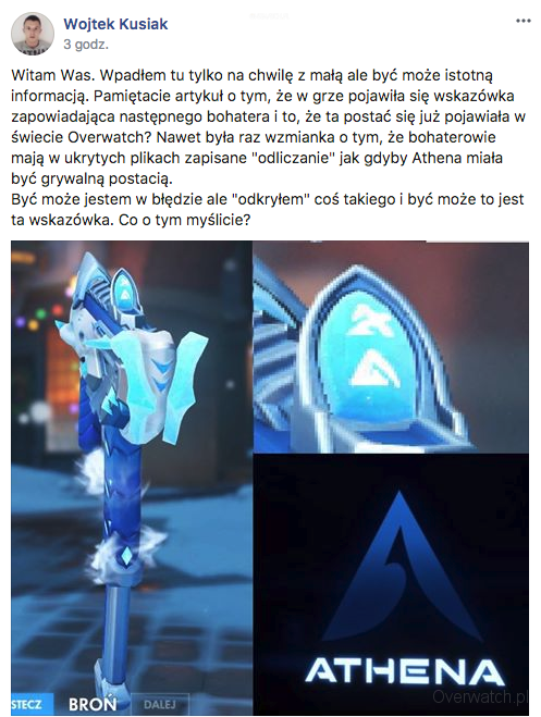 Pamiętacie naszego newsa o tym, że Blizzard umieścił w grze jakąś wskazówkę, co do nowego bohatera? I nagle dostajemy logo Atheny na broni Sombry. Athena od naprawdę długiego czasu uchodzi za potencjalną bohaterkę w Overwatch i kompletnie bym się nie zdziwił, gdyby nagle pojawiła się w grze.
