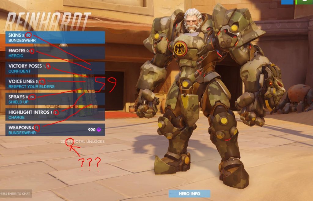 Jednak to nie koniec dobrych wieści, nie jest to jeszcze pewne, ale prawdopodobnie Reinhardt otrzyma jeszcze jeden nowy element, możliwe że będzie to ta sama skórka, ale w innych barwach. Po czym to można wywnioskować? Na serwerze testowym dostępnych ma 59 elementów ozdobnych, jednak sama gra pokazuje, że dostępnych jest ich 61.