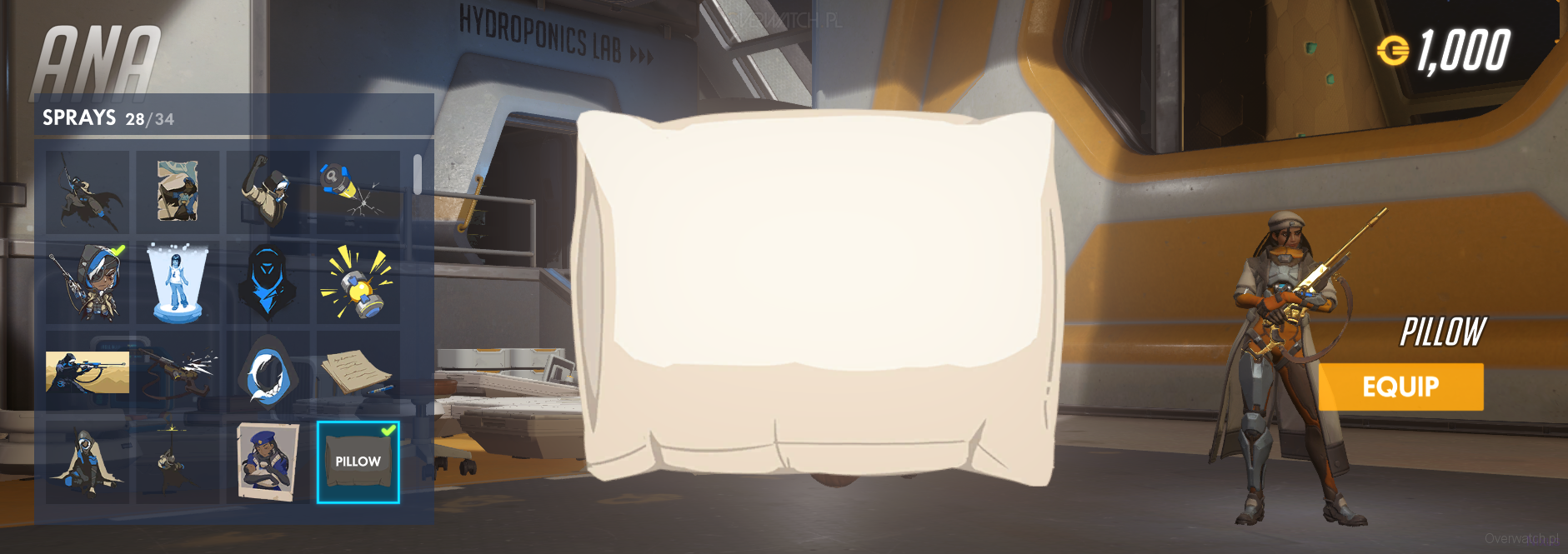 Blizzard w ostatniej aktualizacji dodał fajny smaczek dla graczy - poduszkę.Nie, nie chodzi tutaj o nowego poduszkowego skina czy coś takiego. Gracze prosili od dłuższego czasu o sprej przedstawiający poduszkę, by móc go umieścić po uśpionym przez Anę przeciwniku. Zgadnijcie co znalazło się właśnie w Overwatch? Dobra, i tak już wszyscy wiedzą.