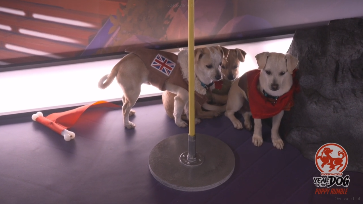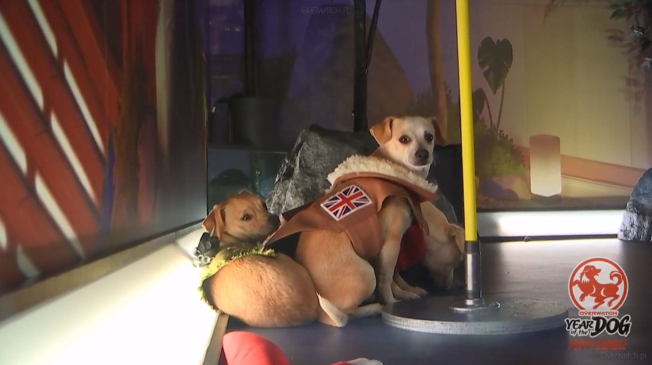Psy zostały przebrane za postacie z Overwatch i puszczone po prostu do studio. Trochę się bawiły, trochę nudziły.