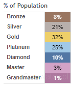 Blizzard ujawnił, jaki procent graczy siedzi w danych rangach.Jeff Kaplan podzielił się z graczami bardzo cenną informacją, która do tej pory była dość dobrze strzeżona. Otóż otrzymaliśmy dokładny, procentowy wykres o tym, jaki procent osób znajduje się w konkretnych rangach.
