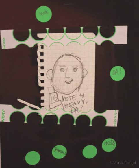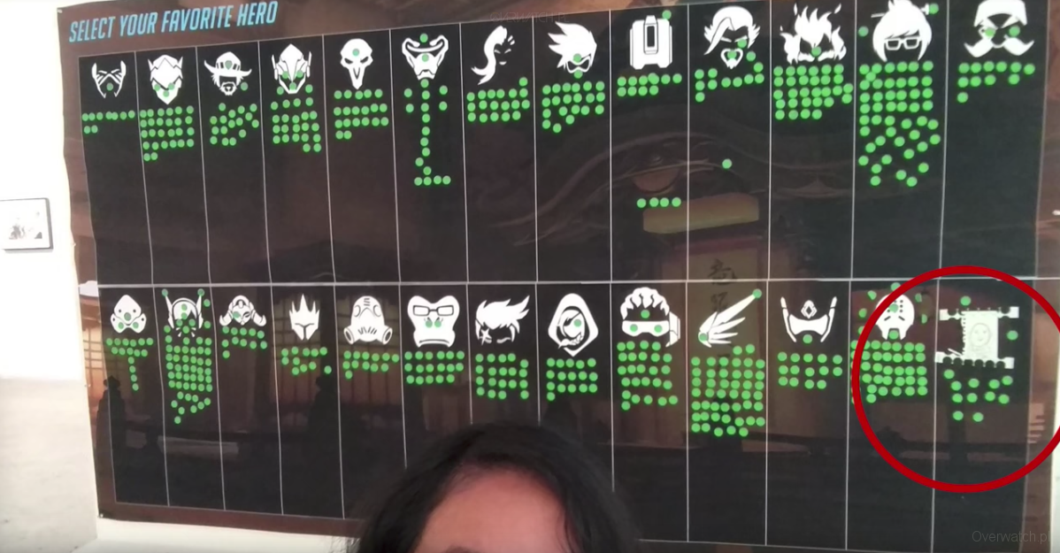 Widnieją tu wszystkie loga z bohaterów z Overwatch i... Coś dziwnego, co zostało zakreślone czerwonym okręgiem.
