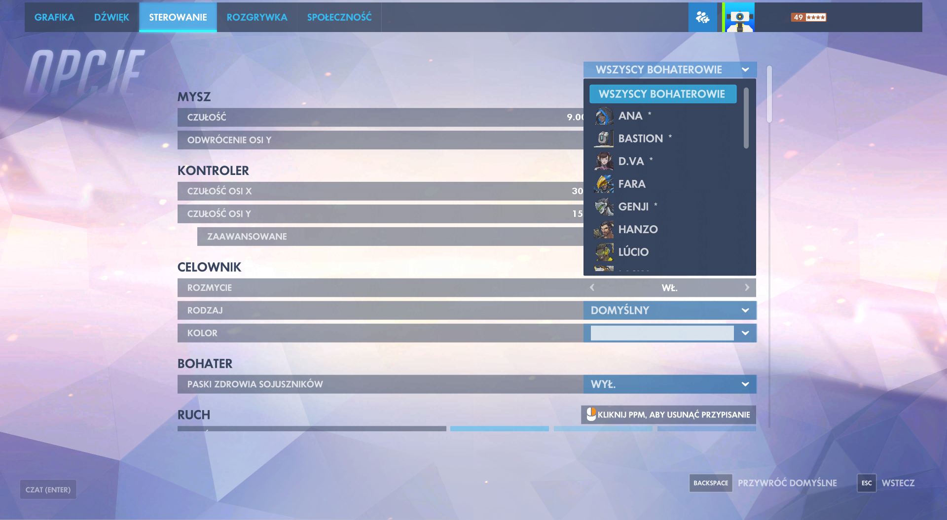 Same celowniki można ustawiać inne dla każdego bohatera. Wystarczy przejść do opcji.
