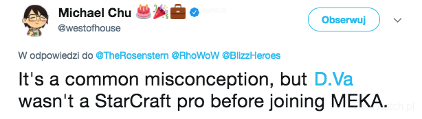Blizzard zaznaczył, że D.Va nie była profesjonalnym graczem Starcrafta.Gdy zobaczyłem tweeta Micheala Chu odnośnie D.Vy, to przyznam, że kompletnie go olałem. Dopiero później zacząłem się zastanawiać, że coś mi tu ewidentnie nie gra. Wszyscy byliśmy przekonani, że przed dołączeniem do MEKA, D.Va grała w SC2. Na wszystkich wikipediach powtarza się to samo, nawet w naszej polskiej wersji: