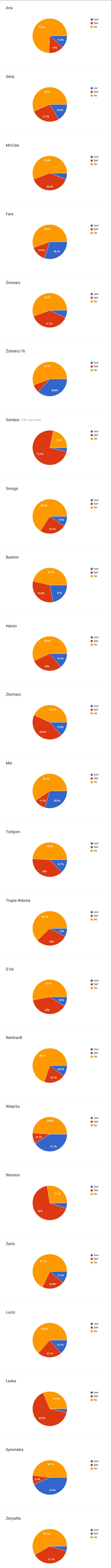 Żniwiarz. Potrzebuje. Buffa. Prawie wszyscy oprócz niego go dostali od premiery, i został w tyle. Krótka lista w jaki sposób został znerfiony na tle innych: buff Soldiera (wyparł on Reapera z czołówki DPS), hak 2.0 (fajnie, nie przechodzi przez ściany, ale zabija na hita), dodanie Any (siedzi na tyłach teamu i utrudnia flankowanie), buff Bastiona (już go sam nie ściągniesz rozstawionego), buff Fary (jedyną nadzieją na zabicie jej było to że w końcu lądowała, teraz już nie musi), buff Symetry (zaczęła zabezpieczać flanki swojego teamu). Buff nie musi być duży, żeby chociaż wzmocnili krok w cień, na razie przydaje się to to tylko do pozycjonowania.
