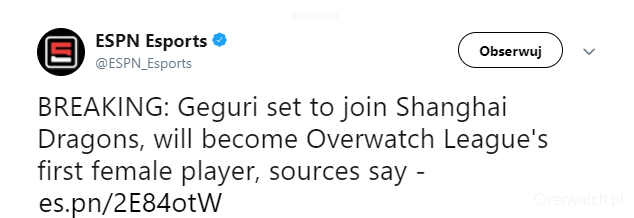 Geguri ma dołączyć do Shanghai Dragons! Pierwsza kobieta w Overwatch League - ciąg dalszy