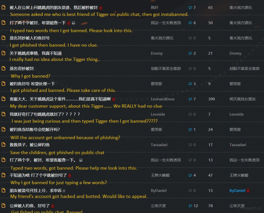 O Kubusiu Puchatku w Chinach krążą legendy. Faktycznie, ten region ma z tym problem. O tym dlaczego, co i jak, film nagrała Weronika Truszczynska. https://youtu.be/1Ck846TzlNA?t=258 Teraz sprawa zajrzała w oczy chińskim graczom. Za napisanie Kubuś Puchatek (po chińsku/angielsku) można dostać bana. Na konto nakładana jest permanentna blokada, z którą nic nie można zrobić. Społeczność Overwatch od razu zareagowała, bo w końcu to trochę dziwaczna sprawa.
