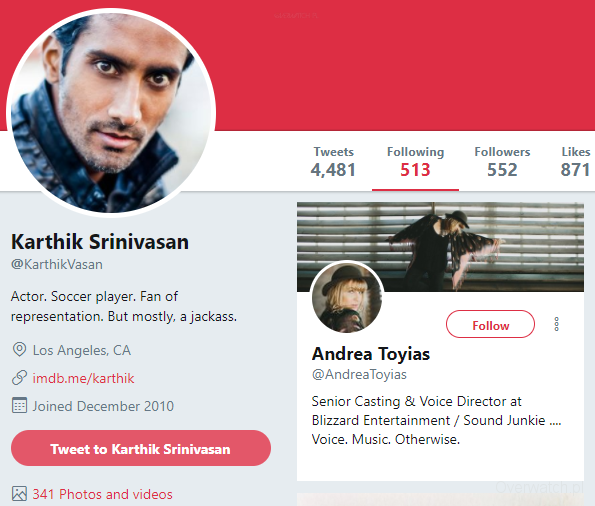 - Taylonic wyczaił, że jego konto na Twitterze zaczęło obserwować Andrea Toyias, osobę o wysokim stanowisku w Blizzardzie - Overwatch's Senior Casting & Voice Director.