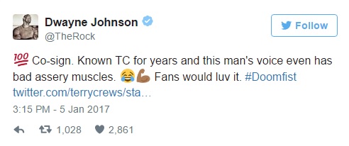 Mało kto spodziewał się, że sam Dwayne Johnson wypowie się na temat Doomfista.Ta sprawa robi się coraz ciekawsza. Najpierw Terry Crews odpowiedział społeczności, potem odwiedził siedzibę Blizzarda a dzisiaj głos w sprawie zabrał aktor, którego kojarzyć możecie z takich filmów, jak Szybcy i Wściekli, Gracze, San Andreas i wielu innych produkcji. Na oficjalnym koncie Twitter aktora pojawił się wpis nawiązujący do Terrego Crewsa i jego współpracy przy tworzeniu Doomfista.