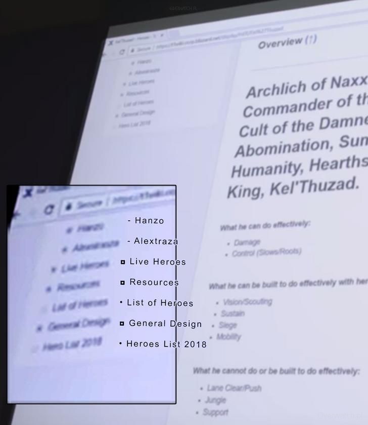 Hanzo jest prawdopodobnie kolejnym bohaterem, który trafi do Heroes of the Storm!W zeszłym tygodniu Blizzard opublikował film pt. Resurrecting Kel'Thuzad: Finding the Fun, gdzie pokazuje szczegóły dotyczące wyglądu bohatera Kel'Thuzad w Heroes of the Storm. W pewnym momencie w lewym górnym rogu pojawia tajemnicza lista, na której widnieje Hanzo!