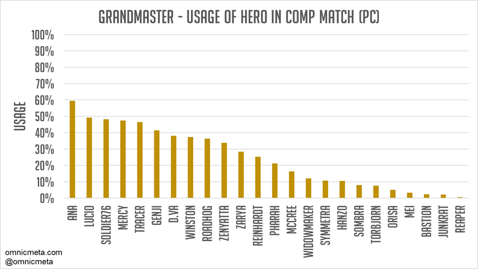 - Tier 3 (>20%): Żołnierz-76 (48%), Ana (25%)