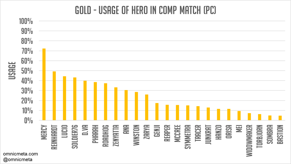 - Tier 4 (>5%): Sombra (14%), Fara(10%), Łaska (10%), Reinhardt (6%)