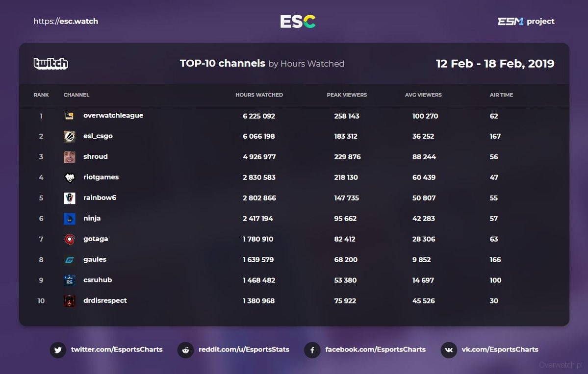 Oczywiście, chodzi tutaj o kanały, nie tematykę. Natomiast i tak jest to świetny wynik, który raczej nie zaskakuje. Już przy okazji poprzedniego sezonu OWL, to kanał Blizzarda zgarniał największą widownię.