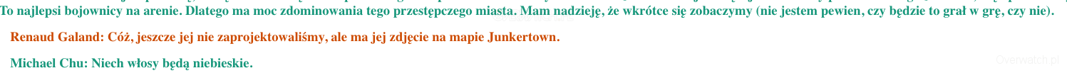 Tu jest trochę problem, bo wiadomo - translator. Z tego co rozumiem, to Blizzard ma nadzieje, że wkrótce ją zobaczymy. Potem dziwne zdanie o grał, nie grał. Ja bym to interpretował w ten sposób, że jeszcze nie wiadomo, czy będzie to grywalna postać. Potem dowiadujemy się, że jeszcze nie jest zaprojektowana.