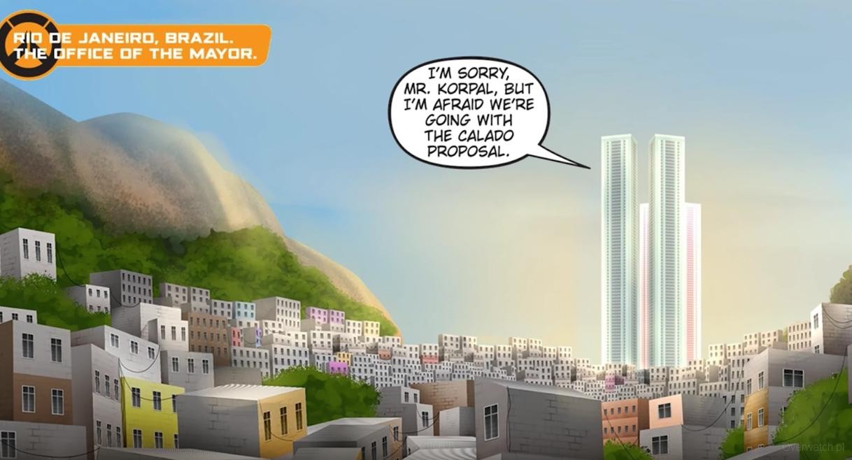 Również Symmetra i Lucio mają dużo wspólnego z tym miastem. Lucio oczywiście pochodzi stamtąd, co wiemy po jego historii w profilu. Symmetra była w Rio przy okazji negocjacji w sprawie Vishkar Corporation.