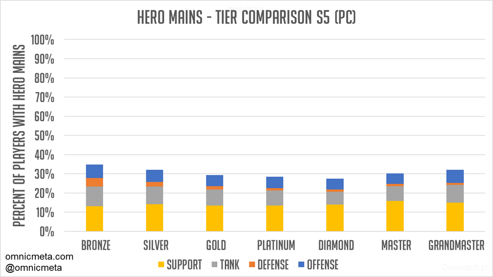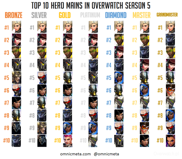 No i mamy zestawienie podsumowujące 5 poziom w Overwatch!Omnicmeta przygotowało fajny raport, pokazujący najpopularniejsze mainy w sezonie 5. Pierwsze miejsce już nikogo nie dziwi.