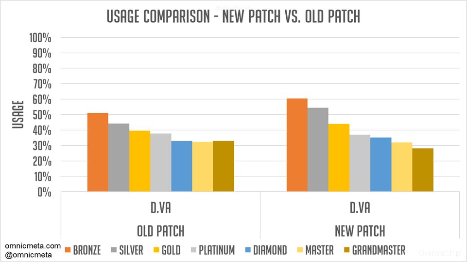 To ciekawa statystyka. Od brązu do złota widać znaczny wzrost częstotliwości wybierania D.Vy, natomiast od platyny do Grandmastera spadek. To pokazuje, że ta "lepsza" część społeczności niezbyt ciepło przyjęła zmiany, chociaż nieco słabsi gracze są całkiem zadowoleni.
