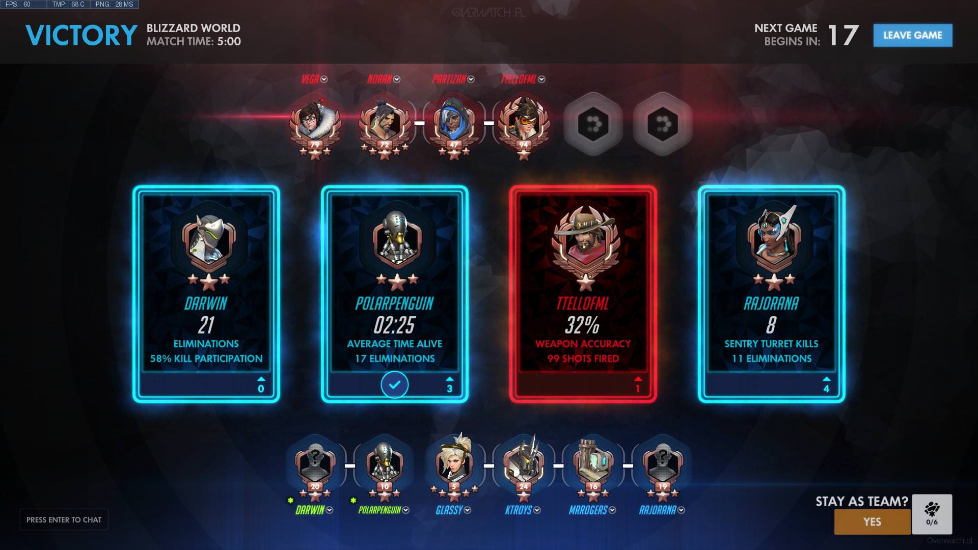 Nowe karty wyników, widoczne wybory przeciwników po dołączeniu do trwającego meczu i zmiana kolorów Bastiona!