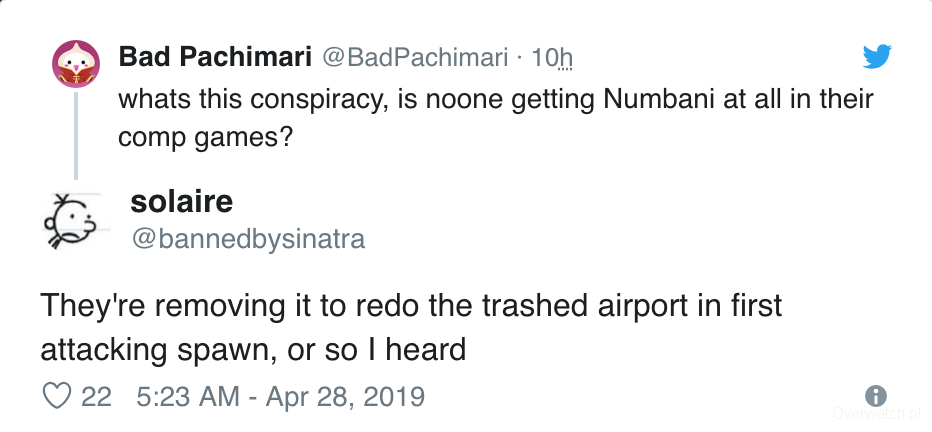 Społeczność Overwatch poruszyła bardzo ciekawy temat. Według wielu osób nie da się obecnie trafić na Numbani w trybie rywalizacji. Grając rankedy po prostu nie zagracie na Numbani. Mapa jakby została wyłączona bez żadnego ostrzeżenia, czy informacji. Mapa dalej widnieje w Salonie Gier i Tajemniczych Bohaterach. Natomiast sprawa jest dość mocno zastanawiająca. Po co wyłączać jedną z lokacji z trybu rankingowego?