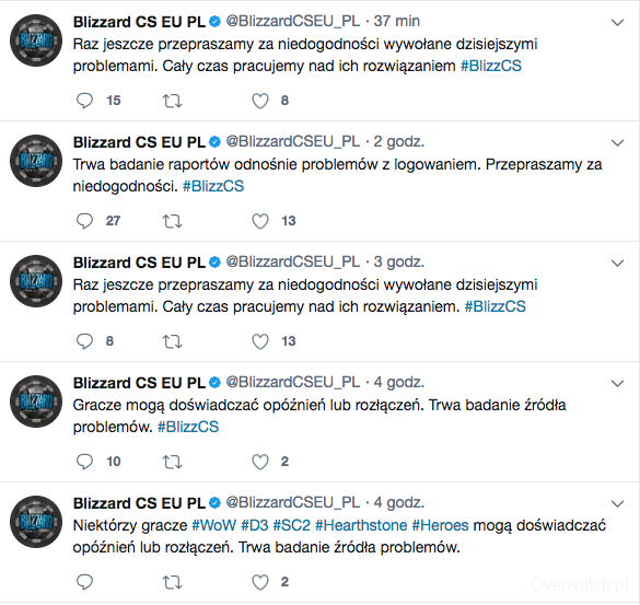 Dostaliśmy od Was informację, że Overwatch ma problemy z działaniem.Blizzard na ten moment bada informacje o niedziałających serwerach. Obecnie występują problemy z logowaniem i z działaniem samego klienta Battle.net Awaria potrwa zapewne jeszcze kilkadziesiąt minut. Będziemy informować.