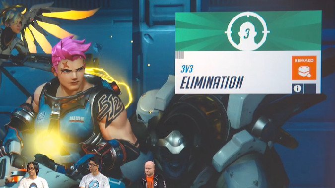 Tryb eliminacji toczony jest w systemie BO5. Wygrywa ten, kto zwycięży trzy gry. Grać można z ekipą lub samemu. Bohatera można wybrać tylko raz i trzeba nim grać już do końca, zmiana jest zablokowana do końca każdej rundy. Jeżeli ktoś umrze, wówczas jest wykluczony z meczu.