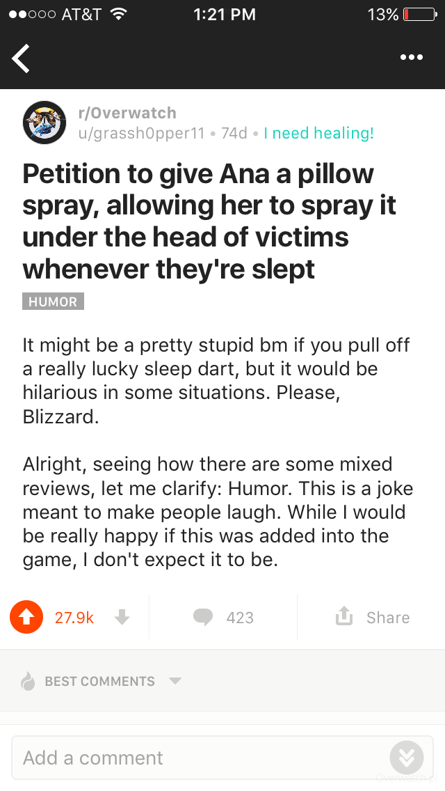 Bo przecież to logiczne, Ana usypia, więc musi mieć poduszkę ;)Jakiś czas temu pewien gracz zaproponował na reddicie, by wprowadzić do gry graffiti z poduszką dla Any. Wszyscy przyjęli pomysł bardzo ciepło, post osiągnął zawrotną ilość "upvote", bo aż 28 tysięcy.