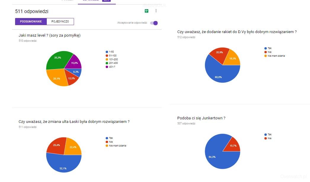 Większość z ankietowanych przekroczyła już 100 level, większość nawet 200. Całkiem nieźle. O ile zmiany D.Vy ocenione zostały dość jednostronnie, o tyle do Łaski przekonanych było jedynie 52% ankietowanych. Oczywiście to nadal większość, ale już nie taka wyraźna. Zdania o JunkerTown są dość jasne.