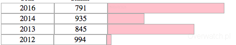 Rokiem wyjściowym był 2012, potem duży wzrost popularności, po czym w 2013 roku spadek. Zaledwie dwa lata później prawie trzykrotnie więcej dzieci było nazywane "Mercy" - czyli akurat w okresie, kiedy pojawił się Overwatch!Nazwalibyście swoje dziecko "Łaska"?