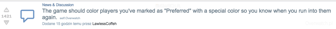 Całość jest bardzo prosta. Chodzi o to, by po wejściu go gry i spotkaniu kogoś, z kim wcześniej chcieliśmy grać, ten gracz był w jakiś sposób oznaczony. Po co? Po to, by wiedzieć, że z tym kimś już graliśmy i było fajnie, w skrócie - możemy na nim polegać i być może mamy większą szansę na wygranie. Pomysł dobrze się przyjął.