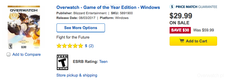 Za trochę ponad 100 złotych możecie dorwać edycję GOTY Overwatch.Sklep bestbuy tuż przed darmowym weekendem ruszył z obniżką cen. Prawdopodobnie tego typu przecen pojawi się więcej w najbliższym czasie, także bądźcie czujni.