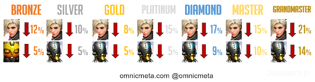 Skoro ktoś zyskuje, to ktoś musi tracić. W tym wypadku jest to bezpośrednia rywalka Any - Łaska. Postać notuje największe spadki nawet po 21%. W Overwatch to naprawdę olbrzymie zmiany i widać ewidentnie dokąd to zmierza. Razem z panią doktor leci również Zenek.