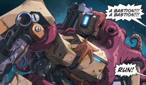 a) Po prostu zwiedza. Trochę naiwne, ale całkiem prawdopodobne... b) To nie jest ten sam Bastion. Tych jednostek było naprawdę tysiące, ale para bastion + ptaszek jest jednak dość oryginalna i raczej nie ma możliwości, by tę dwójkę pomylić. Chyba, że ten ptaszek to nie jest jakiś tam zwykły ptaszek... Bastion w komiksie używa trochę innego języka. Można to porównać, oglądając interaktywną wersje komiksu. Ale może po prostu zamoczył sobie głośnik. c) Bastion zmierza do Petersburga, gdzie panuje obecnie kryzys omniczny. W Petersburgu mieści się również Volskaya Industries. Jednak z jakiegoś powodu chce ominąć Europę Wschodnią, więc zaczynam się powoli bać, co takiego znajduje się w Polsce, skoro nawet maszyna boi się tędy przejść... (Obsługa Ms Paint poziom: Grandmaster)