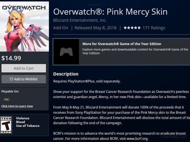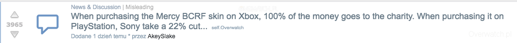 Od momentu pojawienia się nowej skórki Łaski w sklepie, w internecie panuje mylna opinia o Sony.Wszystkie zyski ze sprzedaży Goździk Łaski miały iść na cele charytatywne. W pecetowej wersji Overwatch tak właśnie się dzieje. Podobnie na platformie Microsoftu. Problemy są z Sony i tym, że społeczność zauważyła, iż firma pobiera sobie dodatkowy procent. W internetach zawrzało.