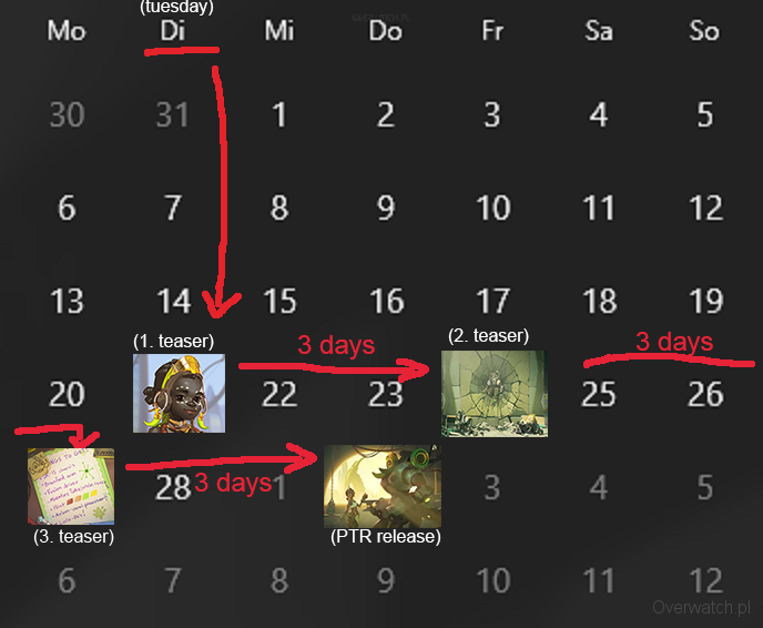 Według tego, co trzy dni powinna pojawiać się jakaś nowość. W piątek i poniedziałek zapowiedzi, natomiast 13 w czwartek Doomfist miałby trafić na serwer testowy.