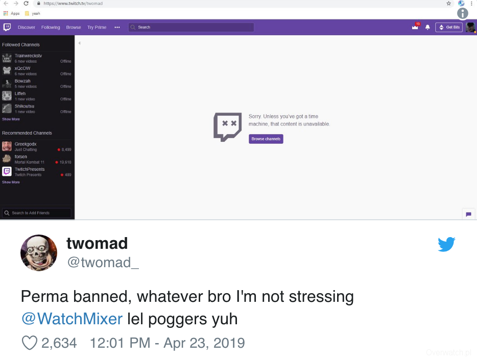 To już któryś niezrozumiały ban w ostatnim czasie na Twitch. Jeden z bardziej znanych streamerów o nicku Twomad został zbanowany bez podania powodu. Twórcę na śledziło 1,000,000 obserwujących. Teraz jego kanał jest po prostu niedostępny.