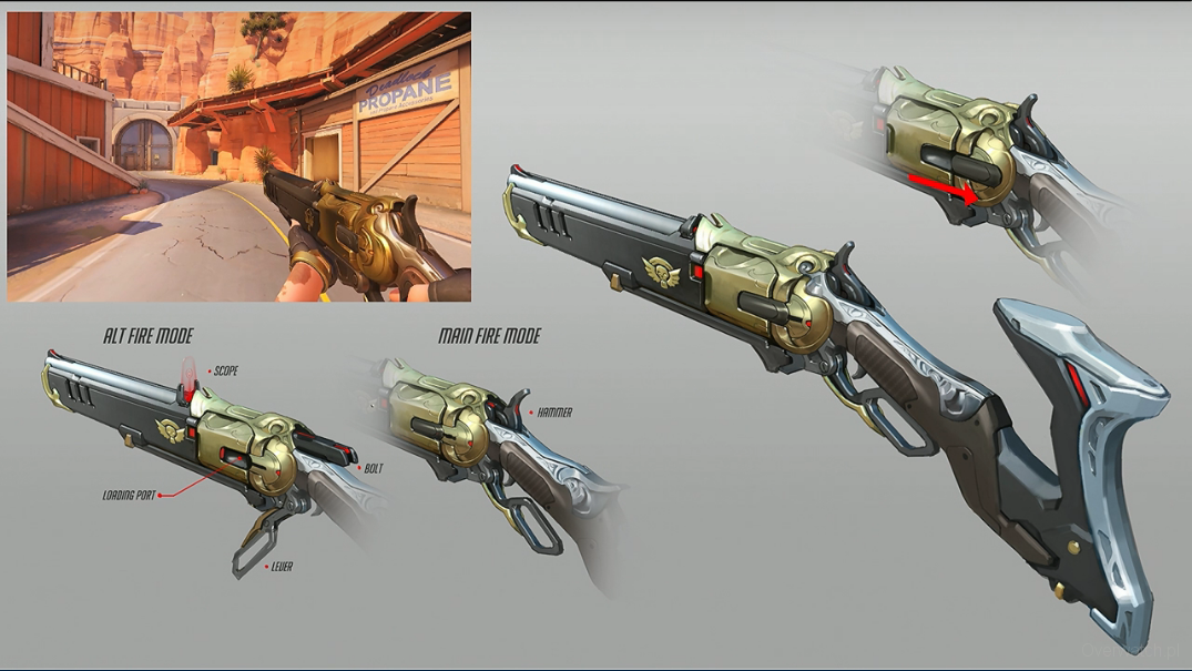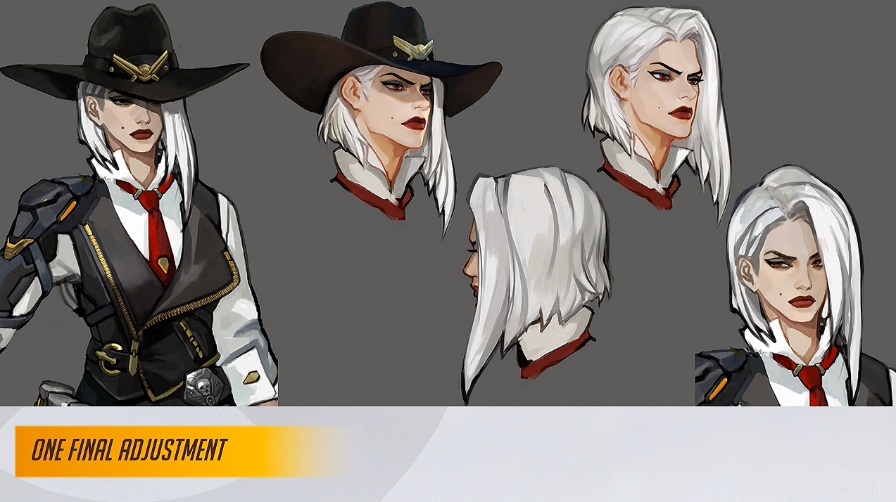 Ashe była trudną postacią do stworzenia, głównie dlatego, że w wielu aspektach przypominała McCree. Dopiero po kilku próbach udało się stworzyć bohaterkę, która nie będzie przypominać istniejącego już w grze rewolwerowca.