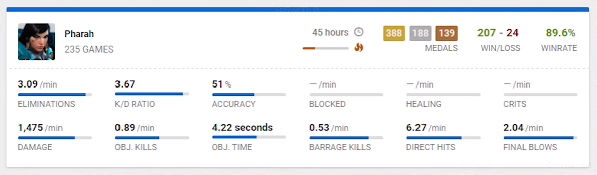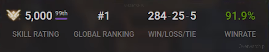 284 wygrane, 25 przegranych i tylko 5 remisów. To wszystko daje procent wygranych meczów na poziomie 92%. Woah! Widząc coś takiego na pececie, pewnie byśmy od razu myśleli o Żołnierzu, Anie i innych, bardzo popularnych postaciach.
