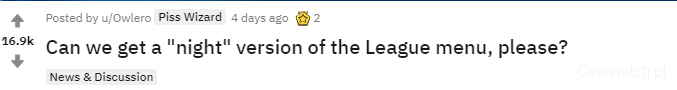 Jak widzicie, prawie 17 tysięcy punktów w 4 dni na reddicie poświęconym Overwatch to nie byle co. To naprawdę sporo. Czyli rzeczywiście, niektórym to niesamowicie przeszkadza i irytuje.