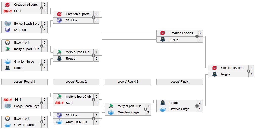 Uczestnicy turnieju: Creation eSports, Rouge, melty eSport Club, SG-1, Northern Gaming Blue, Bongo Beach Boys, Experiment, Graviton Surge