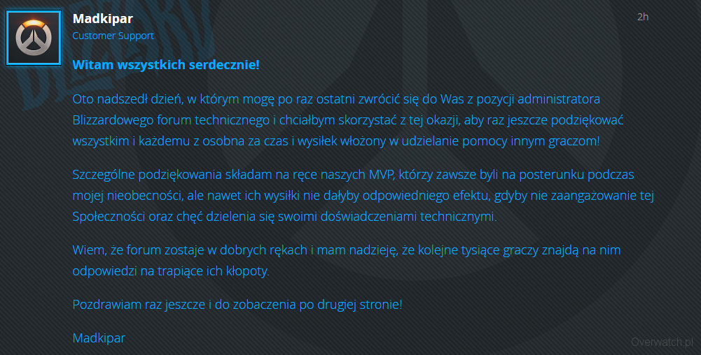 To będzie rok odejść. I to nie tylko zagranicznych opiekunów społeczności. Właśnie dzisiaj podziękowania na oficjalnym forum wstawił Madkipar, osoba, która bardzo mocno działała na forach w kwestiach pomocy technicznej.