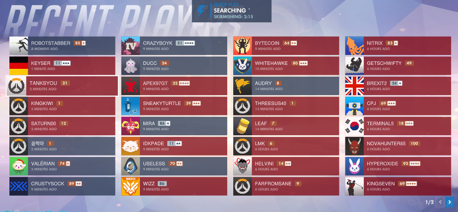 Po dwóch latach Blizzardowi udało się wprowadzić coś, co było tak potrzebne od początku.Rozegracie mecz, chcecie kogoś zgłosić, może zaprosić do drużyny, więc przechodzicie do zakładki "Ostatni gracze" i szukacie wzrokiem po nicku. Niby nie jest to trudne, ale teraz będzie łatwiejsze. Blizzard pokusił się o rozróżnienie kolorami przeciwników i sojuszników. Na serwerze testowym wygląda to tak: