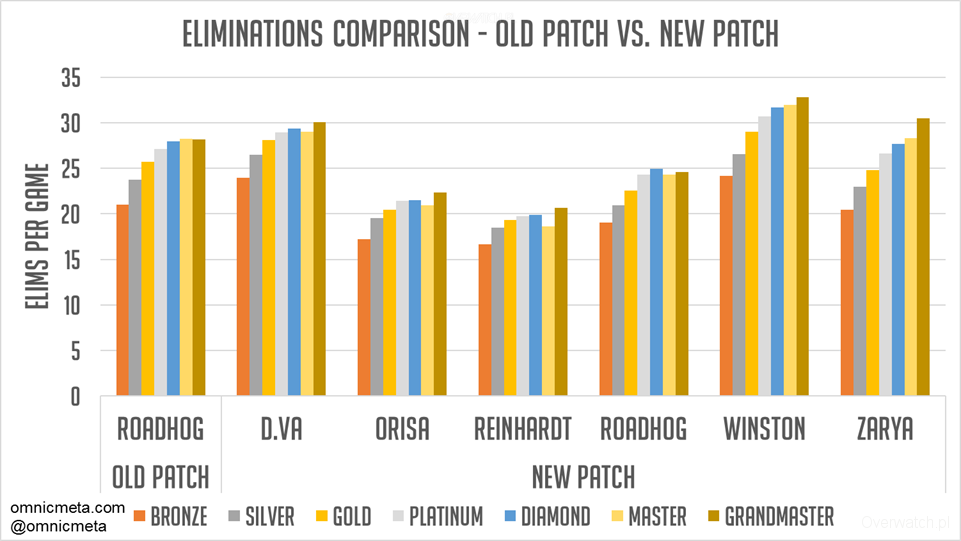 Mamy pierwszy raport od momentu zmian. Jak to wszystko się prezentuje?Jak zwykle skorzystaliśmy z omnicmeta, które przygotowało raport z ostatniej aktualizacji. Już teraz mogę powiedzieć, że Wieprzu stracił naprawdę dużo, natomiast Żniwiarz i McCree całkiem sporo zyskali.