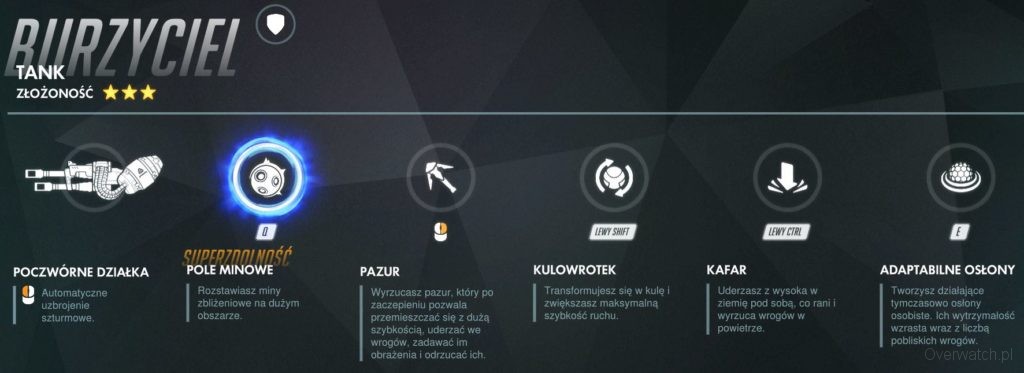 Kiedy Burzyciel maksymalnie doładuje poziom swojej energii, może użyć superzdolności Pole Minowe – powoduje ona rozrzucenie na obszarze min zadających znaczne obrażenia każdemu wrogowi, który w nie wejdzie.