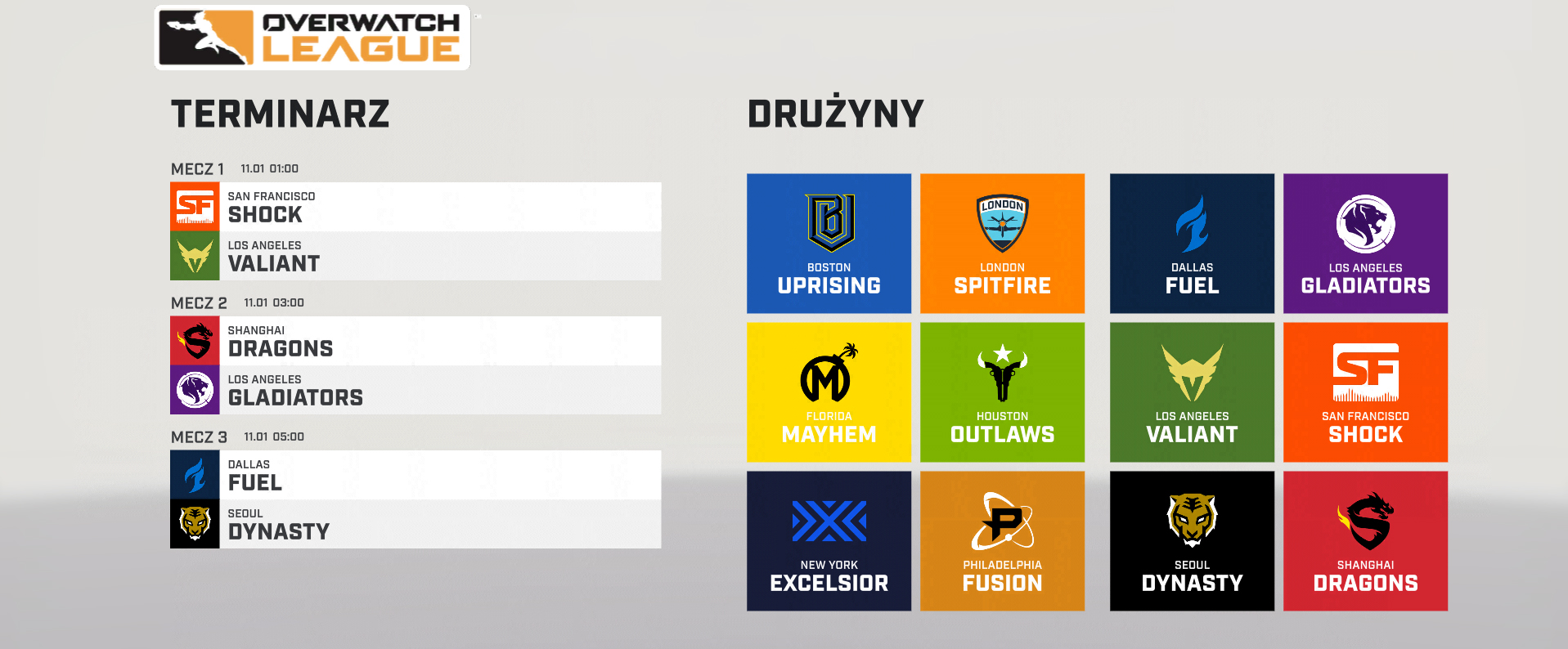 - Jedno dedykowane jest jedynie nowym skinom z Overwatch League. Mamy tam wszystkie drużyny i terminarz.