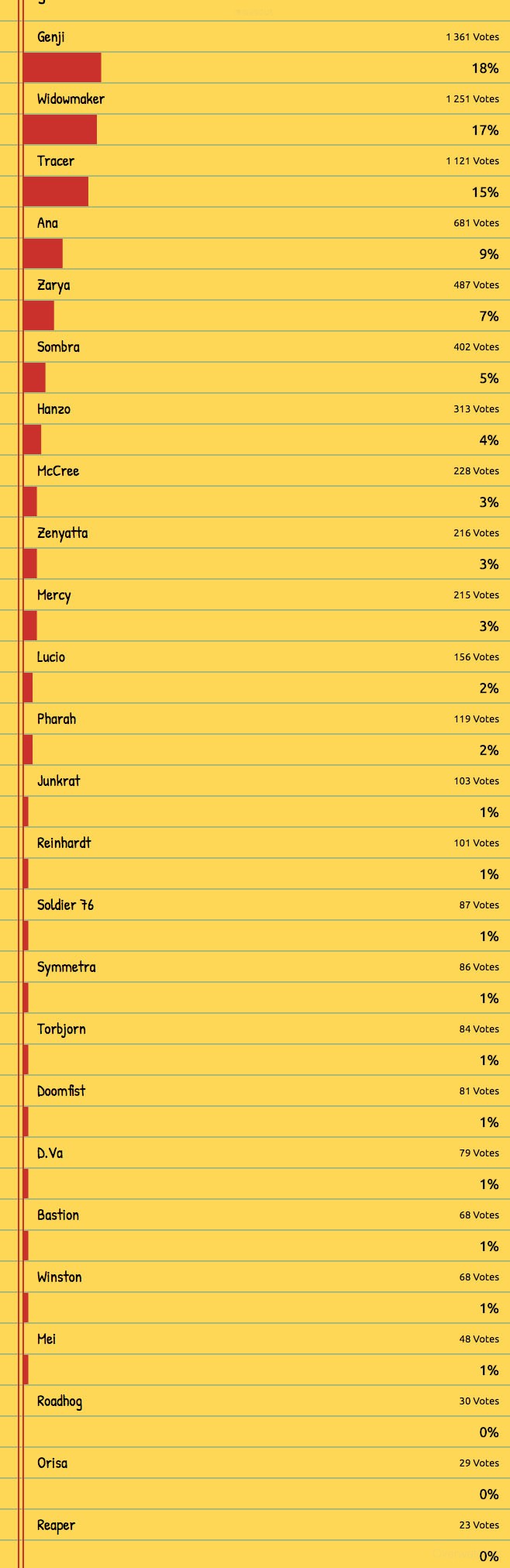 - Na pierwszym miejscu znalazł się Genji z 18%,