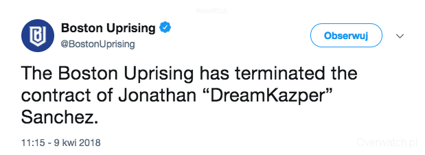 Sprawa chyba jest przesądzona, bo DreamKazper został wyrzucony z Boston Uprising.
