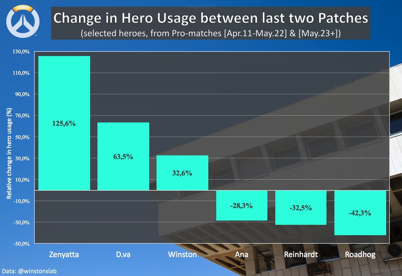 - D.Va i Winston to podstawowe wybory przy Dive Comp. Razem ze spadkiem popularności Reinhardta i Wieprza to oczywiste, że inne tanki będą zyskiwać,